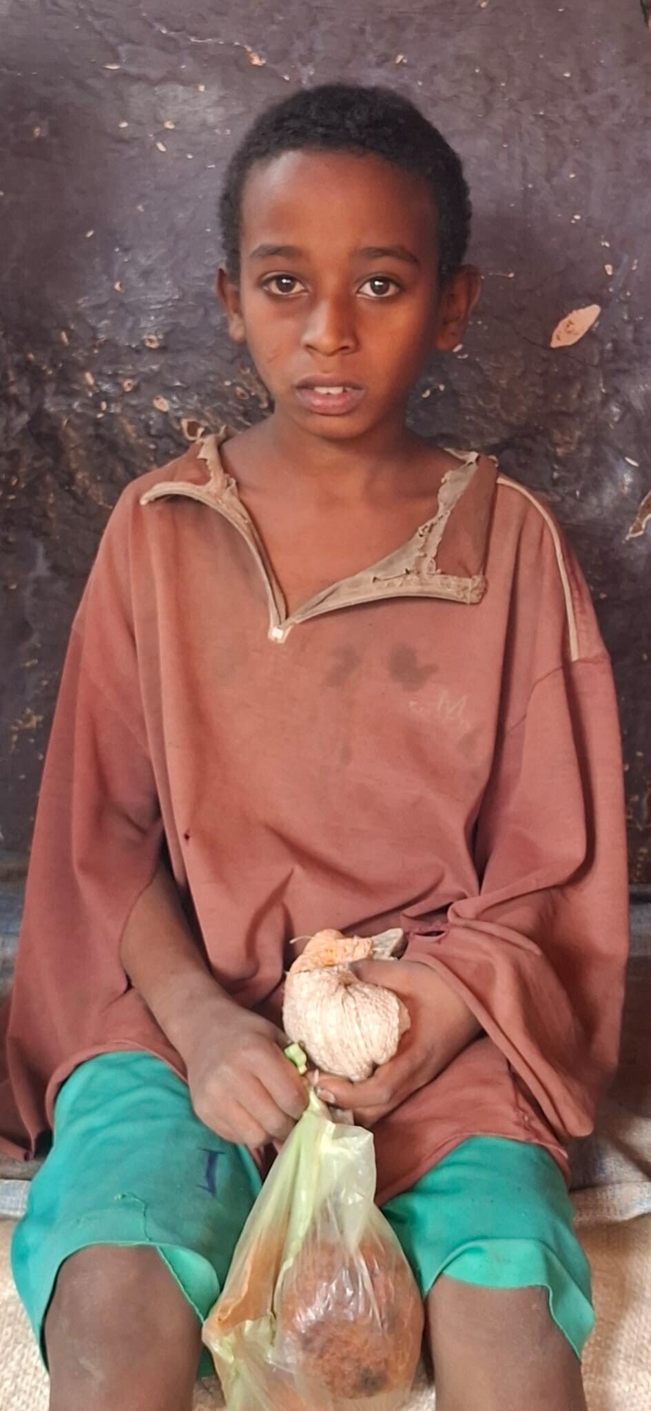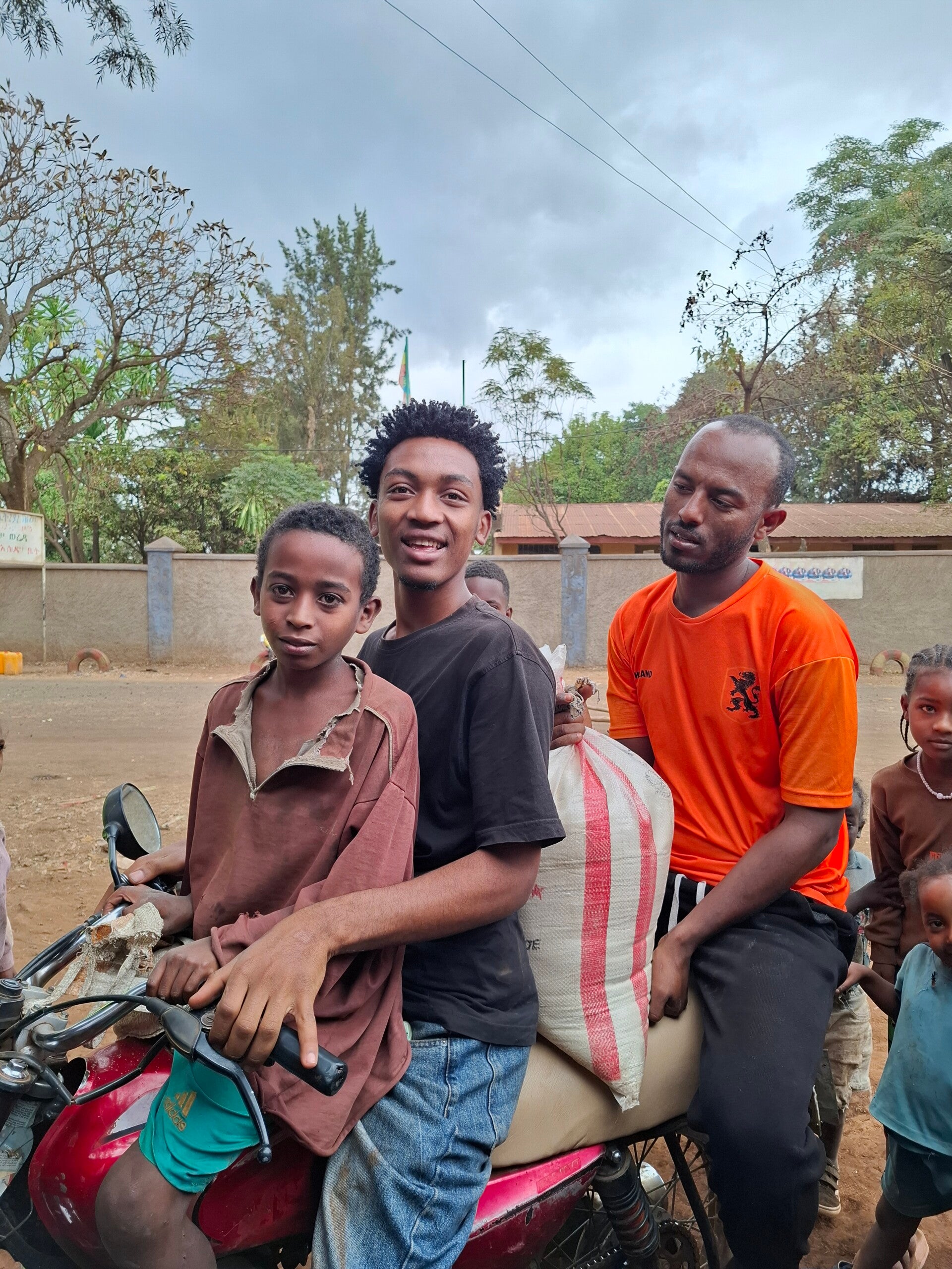 Dit verhaal raakt zo mijn hart. We ontmoetten Teddy. Hij was niet onderweg naar ons, maar we kwamen hem gewoon tegen. Zijn gezichtje stond zo verdrietig. We vroegen naar zijn verhaal. En het bleek dat hij ongeveer een uur lopen van zijn huis af was om restjes eten te bedelen voor zijn gezin, met een heel klein zakje waar het in moest. Hij was zo verdrietig. Deze jongen, hij wist niet meer wat lachen was. We hoorden zijn verhaal en besloten om op huisbezoek te gaan. Eerst kochten we eten voor hem om honger te stillen. Ook kochten we veel eten voor zijn gezin, waar ze een maand mee vooruit kunnen. Teddy ging samen met Jordan en een andere bekende van ons op de motor naar zijn huis, met enorme zakken eten.